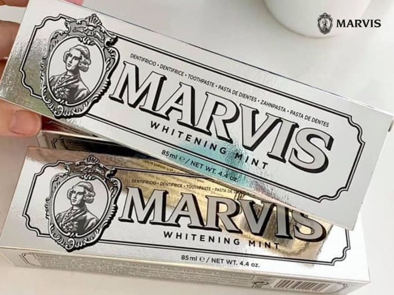 - Marvis Whitening Mint: Đây được coi là dòng “best-seller” với thiết kế vỏ bạc sang trọng. Sản phẩm chứa các hoạt chất làm trắng chuyên sâu giúp cải thiện men răng và loại bỏ tình trạng ố vàng tức thì.
